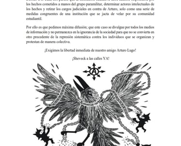Colectivos solidarios exigen la libertad de Arturo Lugo Macías, detenido el 8 de enero de 2026 por la FGR en relación con hechos ocurridos en abril de 2020 durante protestas estudiantiles en la FES Acatlán. El caso expone la violencia institucional y la criminalización de la protesta, así como la exigencia de retiro de los cargos.
