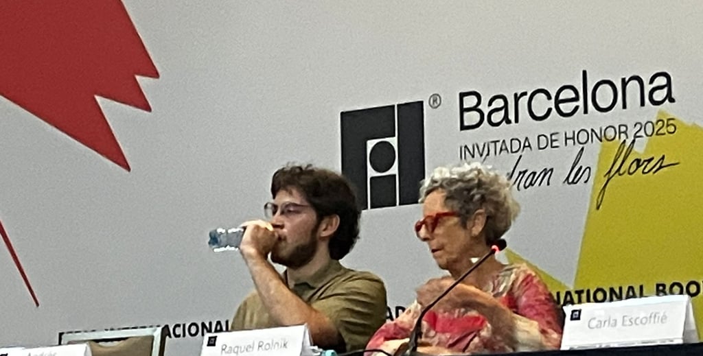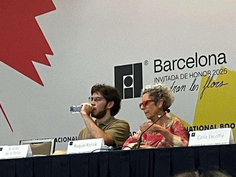 La disertación partió de las similitudes que atraviesan “la ciudad latinoamericana moderna”, que enfrenta profundas contradicciones: desde la escasez de vivienda hasta la destrucción de espacios naturales, advirtió Raquel Roinik durante el panel. La investigadora señaló que estas tensiones se reflejan en fenómenos urbanos que combinan desigualdad, modernización y presión del capital. Desde su experiencia en São Paulo, Roinik explicó: “Hemos construido 400 mil unidades residenciales nuevas… y, al mismo tiempo, 80 mil personas viven en la calle. Es básicamente un esquema que se produce en São Paulo: casa sin gente y gente sin casas”. La investigadora destacó que estos números exhiben la contradicción de los modelos urbanos contemporáneos, donde la expansión inmobiliaria convive con exclusión social, despojo de población y transformación de barrios históricos.