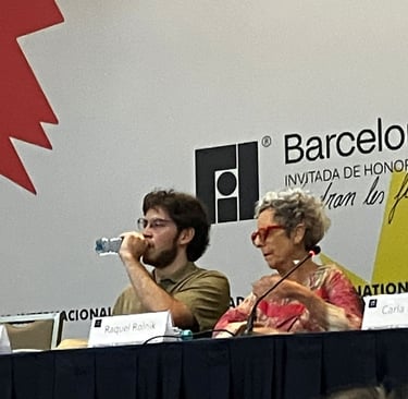 “La ciudad de la modernidad ha perdido su poder utópico y revolucionario, sucumbiendo bajo las formas contemporáneas de dominación del capital. Yo lo definiría como la era del neoliberalismo digital y financiarizado”, señaló Roinik. En su intervención también habló de lo que llamó carbonocentrismo, un modo de ordenamiento urbano que subordina la vida a criterios de movilidad y eficiencia energética, pero en clave mercantilizada.