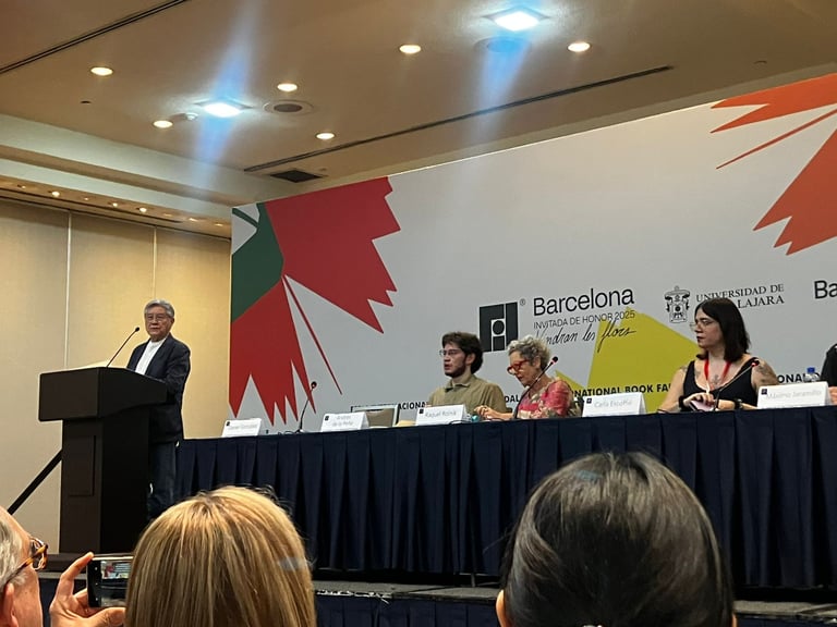 Guadalajara, Jalisco, martes 2 de diciembre de 2025. — En el marco de la Feria Internacional del Libro (FIL), dentro del programa FIL Pensamiento, a las 19:00 horas se llevó a cabo el foro La ciudad en América Latina: crisis del hábitat en tiempos de plataformas y financiarización, organizado por el Centro Universitario de Tlajomulco (CUTlajo). El encuentro tuvo lugar en el Hotel Barceló, salón México II, como parte de las actividades de la feria, y contó con la participación de Raquel Roinik, Carla Escoffie, Daniel González, Máximo Jaramillo, Carlos Crespo y Andrés Peña.