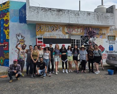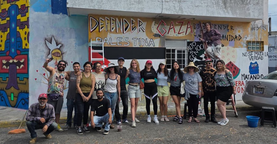 "La jornada en la Colonia del Fresno tuvo como objetivo descentralizar las acciones de apoyo a Palestina, llevar la conversación a los barrios y a otros espacios comunitarios, y con ello romper el cerco informativo que pretende invisibilizar lo que ocurre en la Franja de Gaza. Esta pinta en un barrio constituye una forma de afirmar que defender Palestina es defender a la humanidad."