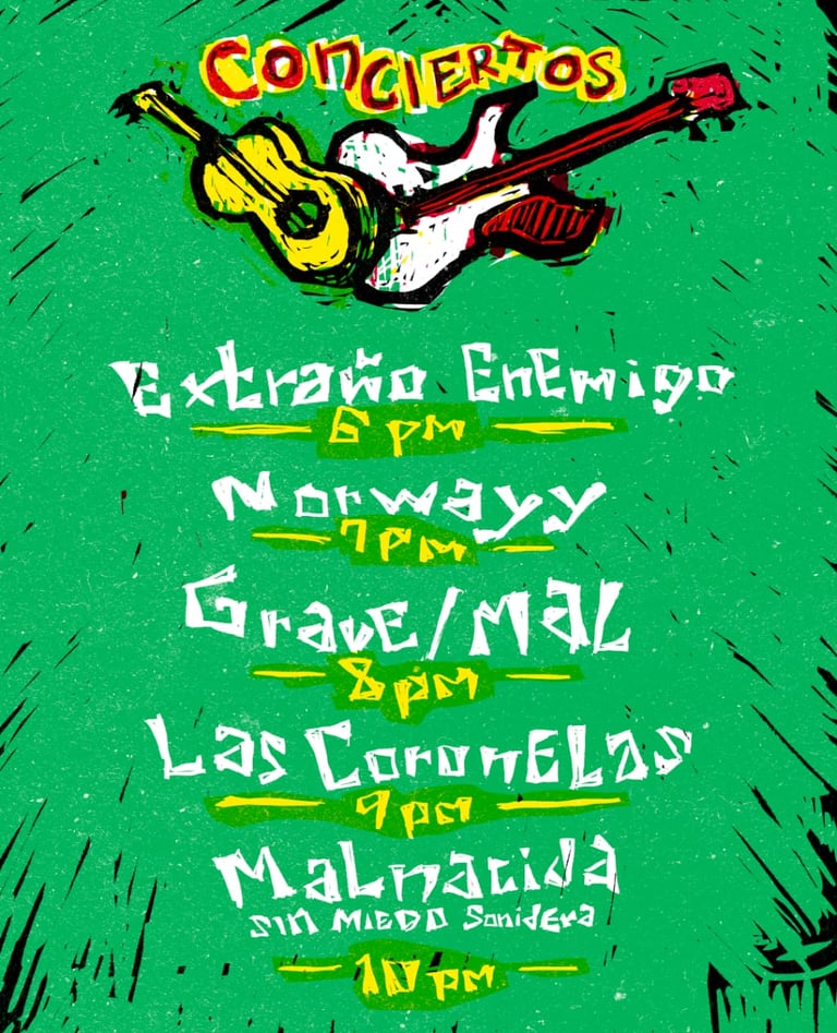 Así como música en vivo a cargo de Extraño Enemigo, Norway, Grave Mal, Las Coronelas y Malnacida Sin Miedo. También se realizarán talleres para elaborar objetos navideños, como grabado y estampado de tarjetas, modelado en barro y fanzines de collage, fortaleciendo la creatividad y participación de la comunidad.