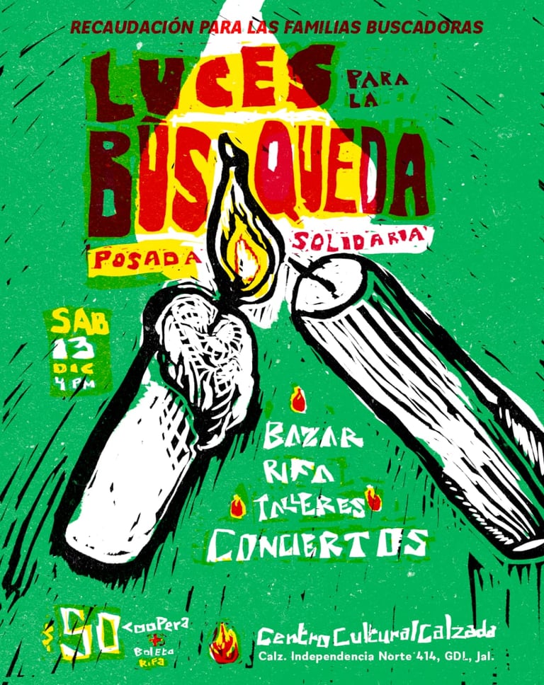 “Luces para la Búsqueda” es un evento solidario que se realizará el sábado 13 de diciembre a partir de las 16:00 horas en el Centro Cultural Calzada, organizado por colectivos y organizaciones de apoyo a familias buscadoras de personas desaparecidas. La jornada busca recaudar fondos y generar espacios de encuentro y participación comunitaria.