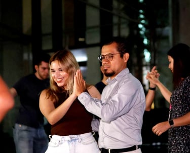 La velada incluyó clase y social de salsa al aire libre, transformando el centro de Guadalajara en una pista de baile. En palabras de la organizadora: “Este social está padrísimo porque se realiza en un espacio público, justo en Ciudad Creativa Digital, un edificio innovador de tecnología y arte. Queremos difundir el arte del baile, en este caso los ritmos latinos, y reunir a la gente en torno a esta expresión artística, aquí en Guadalajara y en los barrios aledaños”.